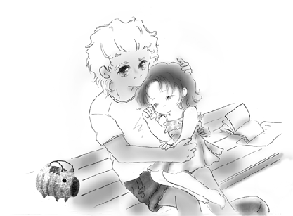 今日はディアッカが夏休みの宿題を教えに来てくれました。 「ディアッカここ、教えて」 「ん?どこ?」 あたしのどんなつまらない質問にもディアッカは優しい笑顔で答えてくれます。 あたしがわかるまで、丁寧に教えてくれます。 「あ、わかった!」 「すごいねミリィ、もう応用もできるなんて」 「うん!ディアッカが昨日教えてくれたもの」 「ん、じゃご褒美♪」 そうしてディアッカはあたしのおでこやほっぺたにキスしてくれます。 それはあたしが一人で正しい答えを出せる度にもらえる素敵なご褒美。 でも、昨日カガリが来て一緒に宿題やった時はしてもらえなかった・・・ あたしは3つも一人で解けたのに… 頑張ったのに… 明日はカガリだけでなくキラとアスランも一緒に算数の宿題をするのだけど… 明日はしてもらえないのかな… 「どうしたの、ミリィ?」 「ディアッカ、もう少し教えて?」 「いいけど、明日も来るよ?無理しなくていいんだよ、ミリィ」 ディアッカはあたしの頭を撫でながら優しく言ってくれました。 ディアッカだって、夏休みの宿題あるはずなのに・・・ なのに、あたしはすごいワガママです。 「今日、頑張りたいの!」 そうして、この日あたしは全部で7つのご褒美をもらえました。 ディアッカは本当に優しいです。 この事、キラに教えてあげなくちゃ! まだヨコシマだと思ってるみたいなんだもの。 きっとこれでキラにもわかってもらえるんだから! ディアッカが全然、ヨコシマなんかじゃないって! …明日もご褒美もらえますように… おやすみなさい、ディアッカ♪ 「ディアミリ6歳編」 夏休みの宿題(キラ日記)…Nちゃんパ−ト♪ 「…できた!」 今日はミリィの家で、皆で夏休みの宿題をやることになってたんだけど。 「ん〜…どれどれ?」 何故か、一つ年上のディアッカもいるんだよね。カガリが言うには、 一昨日も来てたって…。ひょっとして毎日、来てるのかなぁ? 「……はい、正解。よくできたね、ミリィ♪」 そう言って、とろけそうな笑顔でミリィの頭をポンポン、と撫でるディアッカ。 …まぁ、目的はハッキリしすぎてるけどね。 すると、撫でられた頭に手をおきながら、ミリィがちょっと不服そうに言う。 「…なんで、いつものご褒美してくれないの?ディアッカ」 「え。」 ぎくり、と笑顔がひきつるディアッカ。 「ホラ。こことかに…」 そう言って、自分のほっぺを人指し指で指し示すミリィ… …ははぁ…。 何となく、わかっちゃったよ、僕 「なんだ?ご褒美って?ご馳走か!?ミリィ♪」 琥珀色の瞳をキラキラさせて、カガリが向かいの席から身を乗り出してきた。 「わかった!お菓子だな?問題とけたら、くれるのか♪」 ミリィがほっぺを指差したので、すっかり食べ物だと思い込んでしまった カガリ。…ああ、もう…。 そんな食いしんぼさんなところも、とっても可愛いけれど、 ミリィが言ってる『ご褒美』っていうのはね、多分… 「…キスなの…」 うわ。言っちゃったよ、ミリィ… 「キス…?ディアッカが?それがご褒美なのか?」 きょとん、と首をかしげるカガリ。 明後日の方向へ視線を泳がせるディアッカ。 ほんのり頬を染めるミリィ。 驚きのあまり固まるアスラン。 あ〜あ、もう… 何となく気まずくなって、僕はさっきミリィのお母さんが運んでくれたジュース を、口に含んだ。 「…なら、いらないや。キスならいつもキラがしてくれるから♪」 ごほっっ…!! 「そうなの?」 無邪気に聞くミリィに、カガリは得意そうに答える。 「うん!初めて自転車乗れた時とか、逆上がりできた時とか、お母さんのお手伝 いした時とか、ごはん残さずに食べた時とか…って、あれ?よく考えたら毎日だ な♪キラ」 そう言って、ニコニコと僕に確認するカガリ。 ひゅうっと口笛を吹き、面白そうに僕を見るディアッカ。 感心したような眼差しで僕を見るミリィ。 ますます固まり、石化するアスラン。 だだだだだだって…! 「い、いいでしょ、別に!兄妹なんだしっ」 …それに。 「カガリのほっぺ、やわらかくて気持ちいいんだもん」 しまった。つい、本音が… 「あ〜!それ、わかるわかる♪」 すると、すかさずディアッカが同意してくれた。こんな時は、石化してる親友よ りもディアッカの方が頼りになる。 「ミリィのほっぺもさ〜、マシュマロみたいでや〜らかくて♪」 「そう、つい触りたくなっちゃうよね」 「おでこもさ〜、すべすべで気持ちいいし」 「うん、髪の毛からはシャンプーの匂いしたりして」 「そうそう。あ、俺と違うシャンプーなんだ…とか思っちゃったりしてな♪」 「僕たちは一緒の使ってるんだけど、なんか違って思えるんだよね」 「あ、それ俺も感じたことある。この前ミリィん家で」 「ああ、お泊りして、一緒にお風呂入ったんだって?」 「なんだ、バレてた?そ〜なんだよ、ミリィの肌ってさ…」 そんなこんなで、すっかり意気投合してしまった僕たちの話は尽きることがなく。 カガリとミリィは飽きて遊び出しちゃったし、アスランは